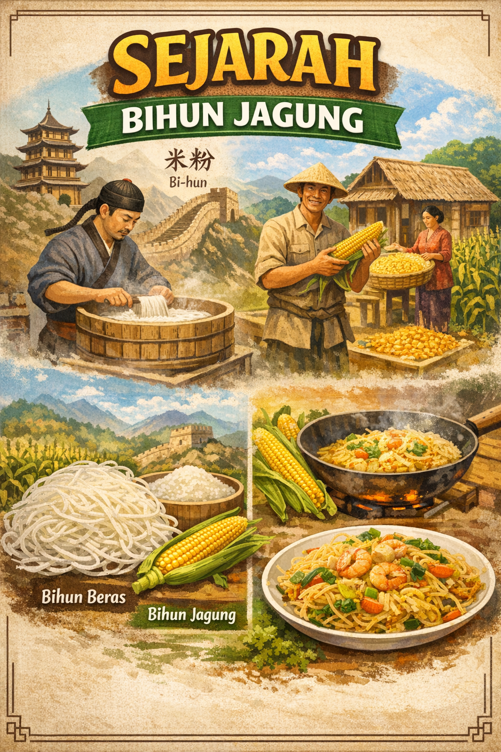 Bihun jagung adalah salah satu bahan makanan yang sangat populer di Indonesia. Meskipun sering digunakan dalam berbagai masakan seperti soto, sup, tumisan, dan gorengan, tidak banyak orang yang mengetahui sejarah bihun jagung dan bagaimana makanan ini berkembang hingga menjadi bagian penting dari kuliner Nusantara.